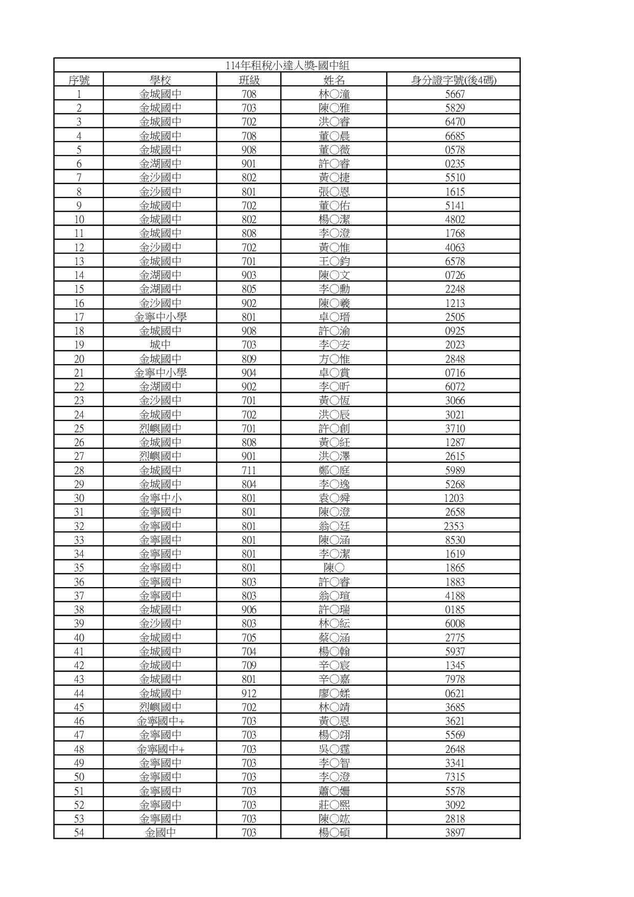 金門縣稅務局為充實學生租稅常識,奠定學生誠實納稅觀念,了解我國租稅制度及節稅知識等,以google表單方式填寫做答,感謝各校師生及家長共同參與和支持,經統計國中及國小學生共有1,488人次參與本年活動,但需測驗題全部答對者,才可獲得租稅小達人獎,經排除答案錯誤、資料不全、資格不符及重複者,結果計有國中組372人、國小組676人,共1,048名學生獲得租稅小達人獎(國中組禮券150元、國小組禮券100元)。中獎名單於稅務局網站(網址https://kmtax.kinmen.gov.tw)首頁>活動快訊下及縣府網站皆有公布。為利發放獎學金及獎品,稅務局都將造冊分送各校,請校方協助轉發。